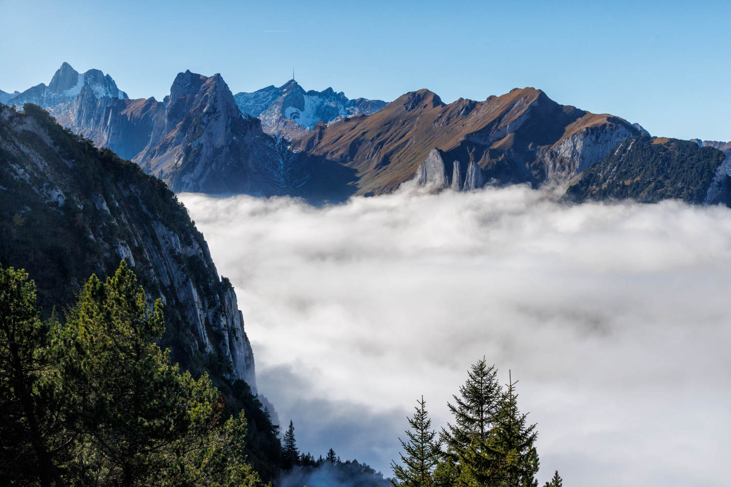 Daneben unternehmen wir eine kleine fotografische Wanderung (400 Höhenmeter sind zu überwinden) zu den spektakulären Kreuzbergen und hinunter zum ausnehmend schönen Fählensee.