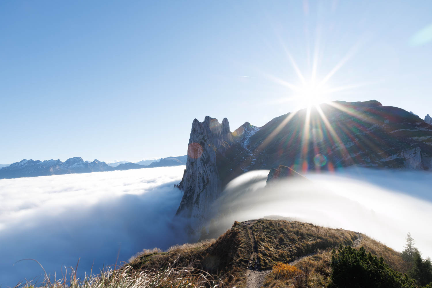 In der Bergruppe des Alpstein finden wir einen ausgezeichneten Platz für tolle Fotos: Das Panorama auf dem Stauberngrat ist einzigartig in seiner Vielfalt. Zum einen reicht der Blick weit über das Rheintal bis hin zum Bodensee. Und zahlreiche Gipfel, wie unter anderem der berühmte Säntis, sind in Sichtweite. Es bietet sich ein wunderbarer Ausblick auf grosse Teile des Alpsteingebirges.