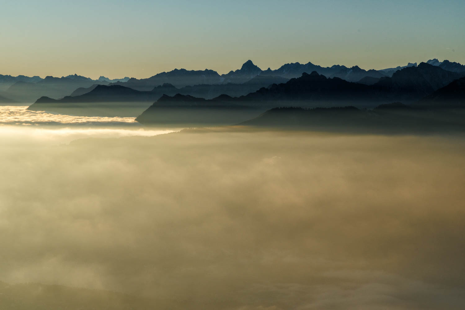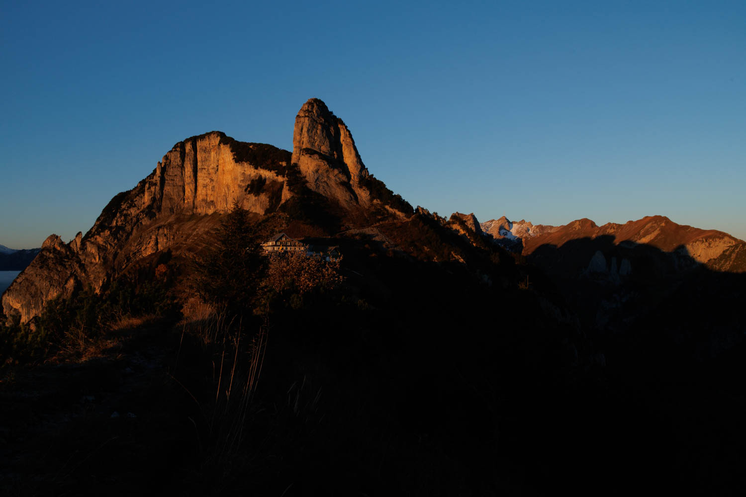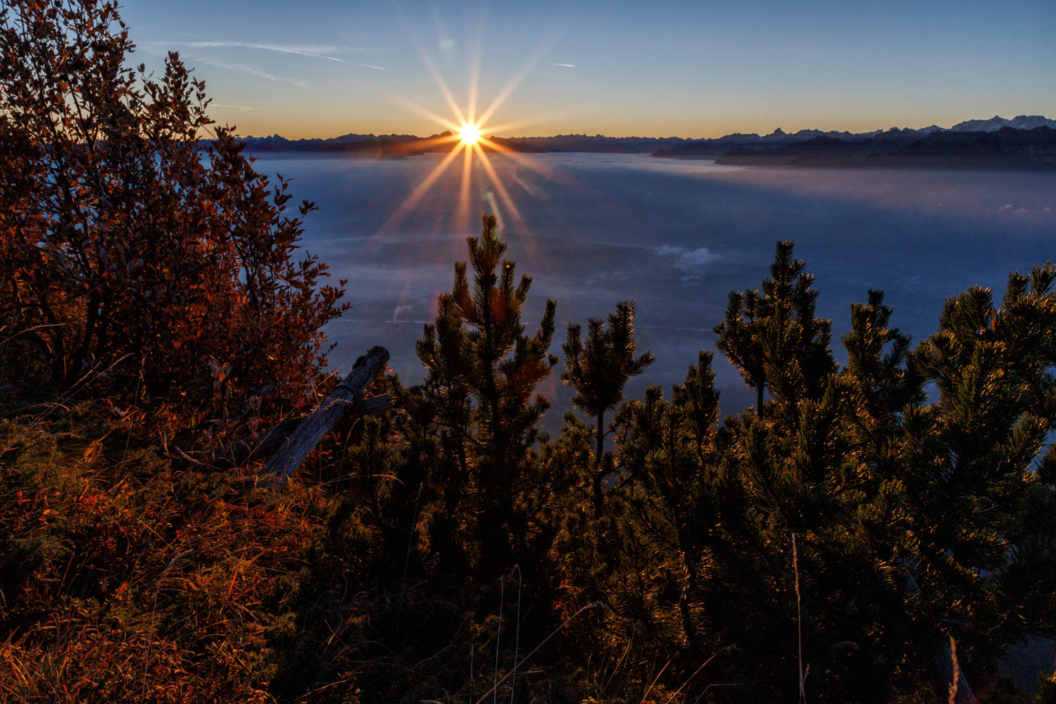 Auch bei Nacht ist das Panorama nicht weniger spektakulär und prädestiniert für Nacht- und Sternenfotografie (der schwache Mond wird uns da nicht stören). Besonders die funkelnden Lichter des ganzen Rheintals zu bestaunen ist ein unvergessliches Erlebnis.