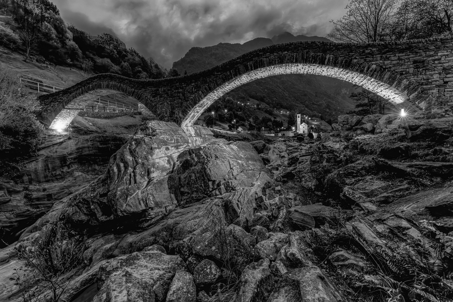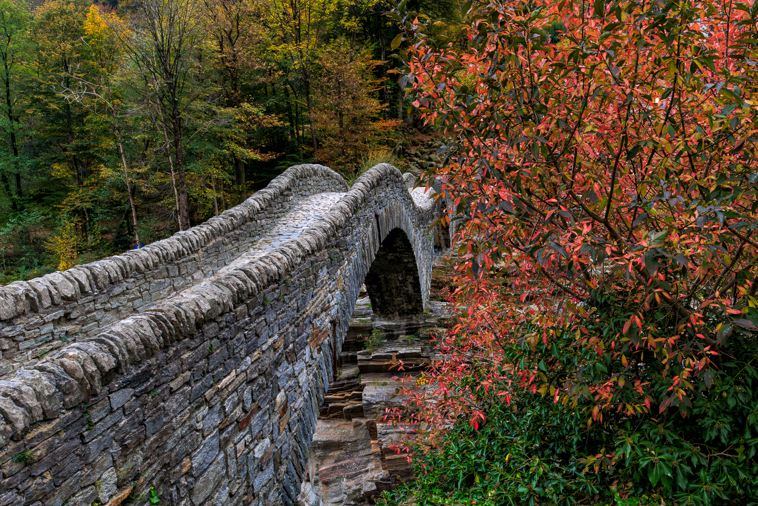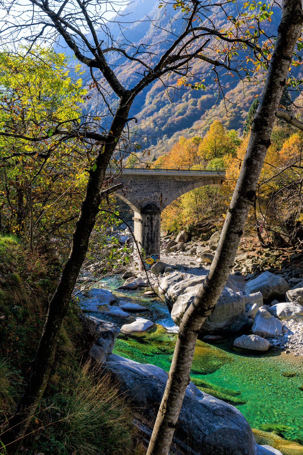 Wir wohnen in Lavertezzo in einer Osteria direkt an der berühmten Römerbrücke, der wir uns natürlich auch fotografisch widmen.
